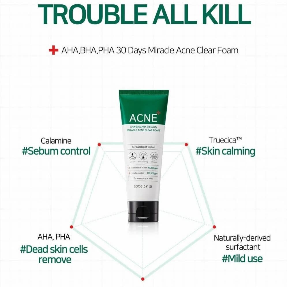 SOME BY MI AHA BHA PHA 30 Days Miracle Acne Clear Foam – 3.38oz, 100ml – Korean Acne Face Wash for Smooth & Clear Skin – Salicylic Acid Cleanser for Exfoliation & Sebum Control – Korean Skin Care