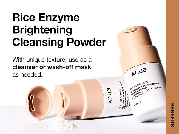 - RICE WATER FOR BRIGHTER SKIN : Contains ANUA RICE WATER+, a complex including Rice Extract, Arbutin and Papain to help with dull uneven skin tone.