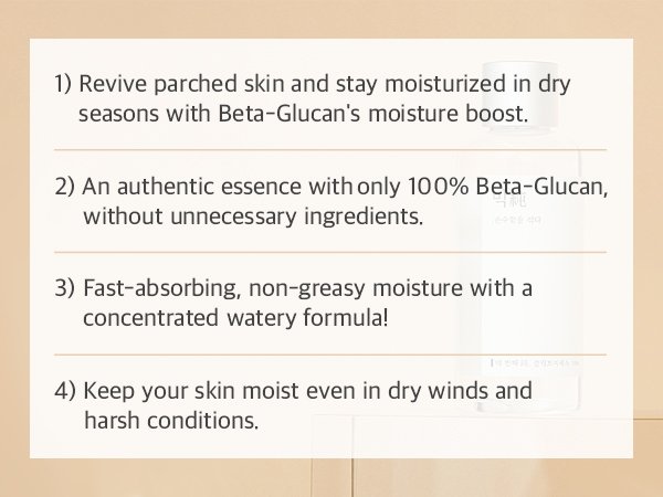 Water/Aqua, Butylene Glycol, Beta-Glucan, Glycerin