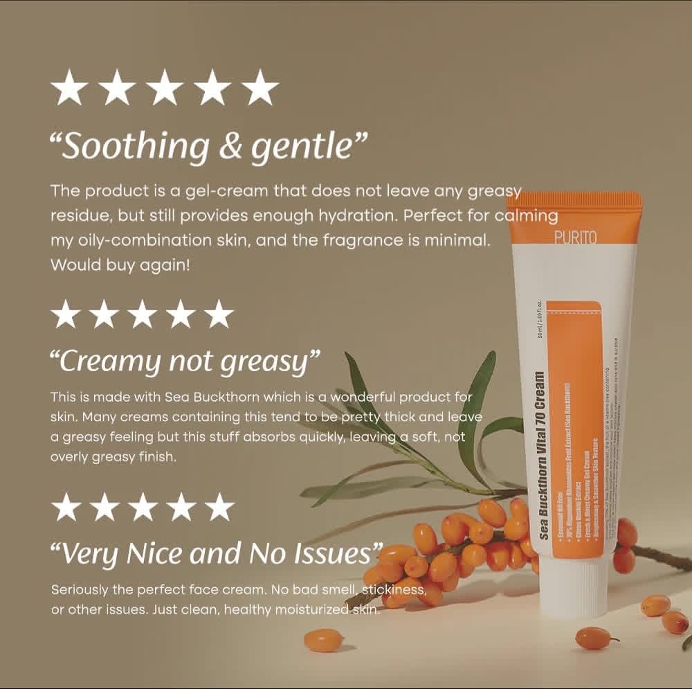 PURITO [ESSENTIAL OIL-FREE] Sea Buckthorn Vital 70 Cream 50ml / 1.7 fl.oz🍊🍊🍊🍊