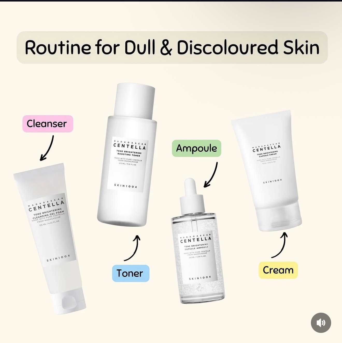 SKIN1004 Tone Brightening Set 4 pieces Toner 210ml, Ampoule 100ml, Cleansing Foam Wash 125ml, (big bottles)